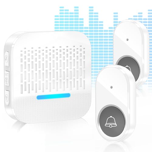 SURFOU Sonnette Sans Fil Exterieur Etanche Carillon Sonnette avec Batterie 300m Distance 2 Émetteur Extérieur et Récepteur Intérieur 55 Sonneries Incluant Noël 5 Volumes au LED Bleu, Blanc