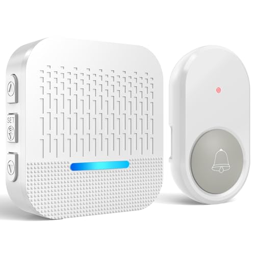 SURFOU Sonnette Sans Fil Exterieur Etanche Carillon Sonnette 300m Distance Émetteur Extérieur et Récepteur Intérieur 55 Sonneries Incluant Noël 5 Volumes au LED Bleu, Blanc