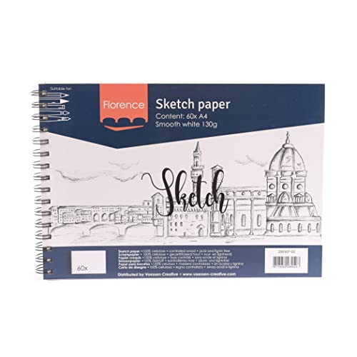 Florence Papier Dessin - A4 - 60 feuilles - 130 g/m² - Bloc de Papier pour Esquisses et Croquis - Carnet de Dessin - Sketchbook pour Crayon Graphite, Feutres et Marqueurs