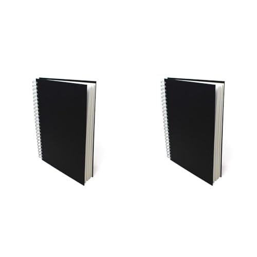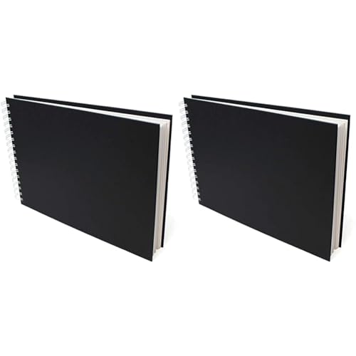 Artway Studio - Carnet à dessin avec reliure double spirale et couverture rigide - papier cartouche sans acide - 170 g/m² - 48 feuilles - A4 paysage - Noir (Lot de 2)