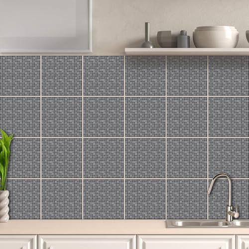 Stickers muraux Cuisine - Sticker Mural - Carreaux de Ciment adhésif Mural - Stickers Muraux azulejos - Sticker Carrelage adhesif Mural Salle de Bain 20 x 20 cm - 15 PCS Carreau de Ciment adhesif gris