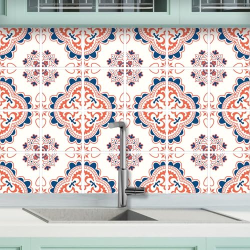 Stickers Meubles Cuisine - Sticker Mural - Carreaux de Ciment adhésif Meuble - Stickers Muraux azulejos - Sticker Carrelage adhesif Meuble Salle de Bain 10 x 10 cm - 24 pcs Carreau de Ciment adhesif