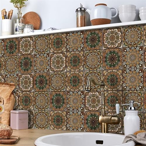 Andiker Mural Stickers Carrelage 10 Feuilles de 15cm X 15cm, Imperméables Carreau de Ciment Adhesif pour Cuisine, Salle de Bain, Autocollants Carreaux Dosseret pour la Décoration à la Maison