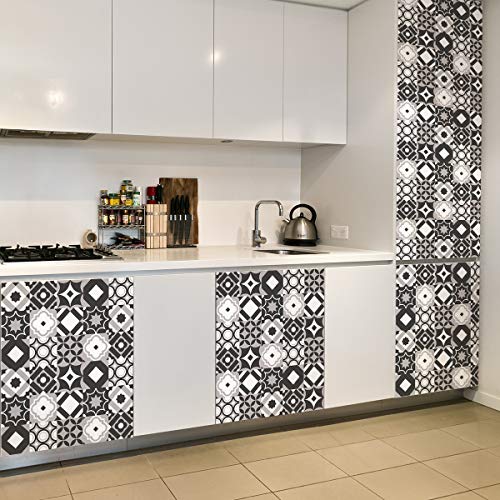 Stickers muraux Cuisine - Sticker Mural - Carreaux de Ciment adhésif Mural - Stickers Muraux azulejos - Sticker Carrelage adhesif Mural Salle de Bain 20 x 20 cm - 24 pièces Carreau de Ciment adhesif