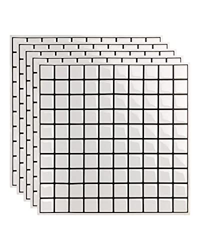 DEWOO Autocollant Carrelage Carreaux Adhesif Mural Rectangulaires Credence Adhesive pour Cuisine Salle de Bain,Blanc (10-Pièces,30.5x 30.5cm)