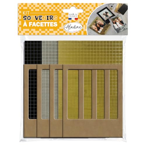 Aladine - Kit Cadres Photo à Facettes - Noir, Argent, Doré - 4 formes en Bois + Carreaux Adhésifs - Kit Loisirs Créatifs - 85616