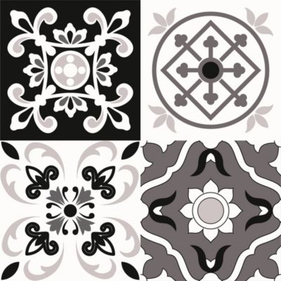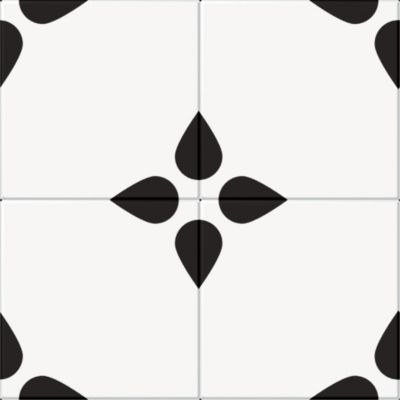 Lot 8 carreaux adhésifs décoratifs Vinyl Way Capri Dada Art effet carreau de ciment noir & blanc L.20 x L.20 cm x ep.1,3 mm