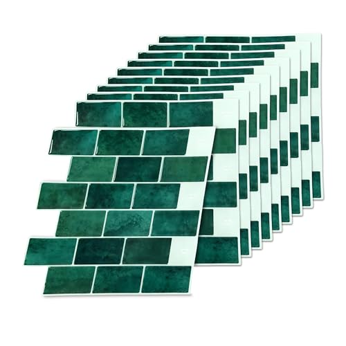 Relaxdays Carreaux adhésifs 3D, 10 pièces, Salle de Bain & Cuisine, 30x30 cm, découpables, Vert