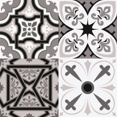 Lot 8 carreaux adhésifs décoratifs Vinyl Way St Remy Dada Art effet carreau de ciment noir & blanc L.20 x L.20 cm x ep.1,3 mm