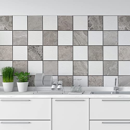 CREARREDA Lot de 20 carreaux adhésifs pour cuisine, salle de bains et cabine de douche en marbre gris, 15 x 15 cm, imperméables en vinyle auto-adhésif pour salle de bain et cuisine, fabriqué en Italie