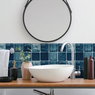 8 carreaux adhésifs motif géométrique bleu L.10 x H.10 x l.0,4cm