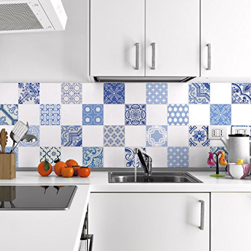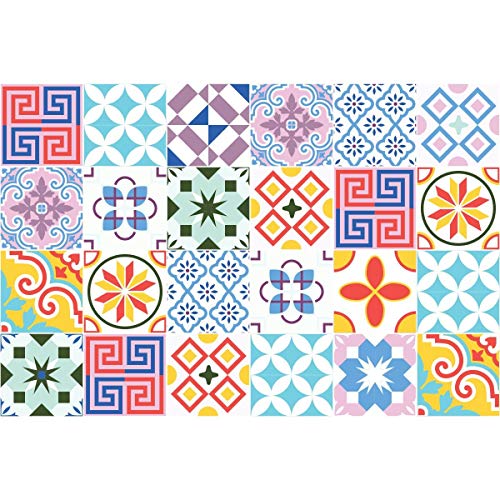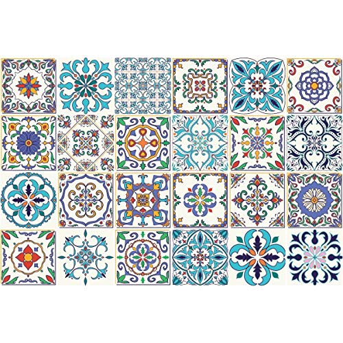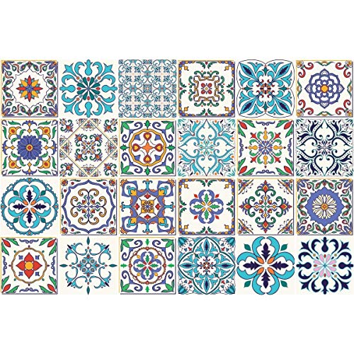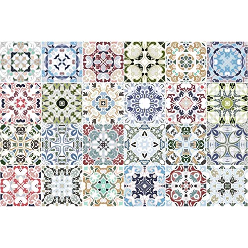 24 Stickers adhésifs carrelages | Sticker Autocollant Carreaux de Ciment - Mosaïque carrelage Mural Salle de Bain et Cuisine | Carreaux de Ciment adhésif Mural - azulejos - 15 x 15 cm - 24 pièces