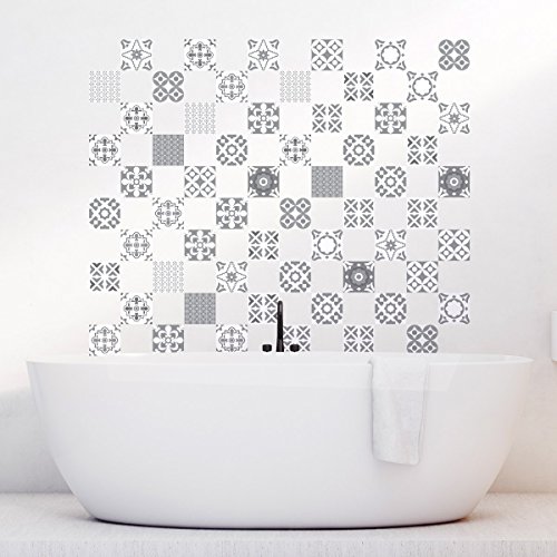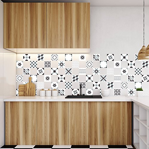 60 Stickers adhésifs carrelages | Sticker Autocollant Carreaux de ciment - Mosaïque carrelage mural salle de bain et cuisine | Carreaux de ciment adhésif mural - azulejos - 15 x 15 cm - 60 pièces