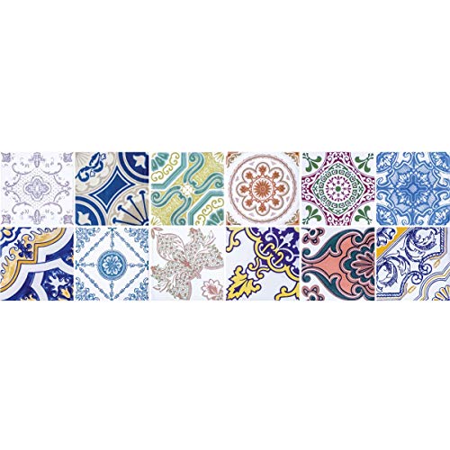 12 Stickers adhésifs carrelages | Sticker Autocollant Carreaux de ciment - Mosaïque carrelage mural salle de bain et cuisine | Carreaux de ciment adhésif mural - azulejos - 15 x 15 cm - 12 pièces
