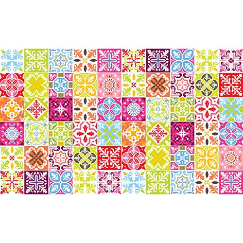 Ambiance Sticker Adhésifs Carrelages Autocollant Ornements Folklorique Carreaux de Ciment Carrelage Sticker Mural Salle de Bain et Cuisine | 24 Pièces de 10 x 10 cm