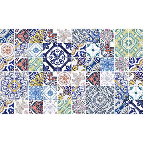 60 Stickers adhésifs carrelages | Sticker Autocollant Carreaux de Ciment - Mosaïque carrelage Mural Salle de Bain et Cuisine | Carreaux de Ciment adhésif Mural - azulejos - 15 x 15 cm - 60pièces