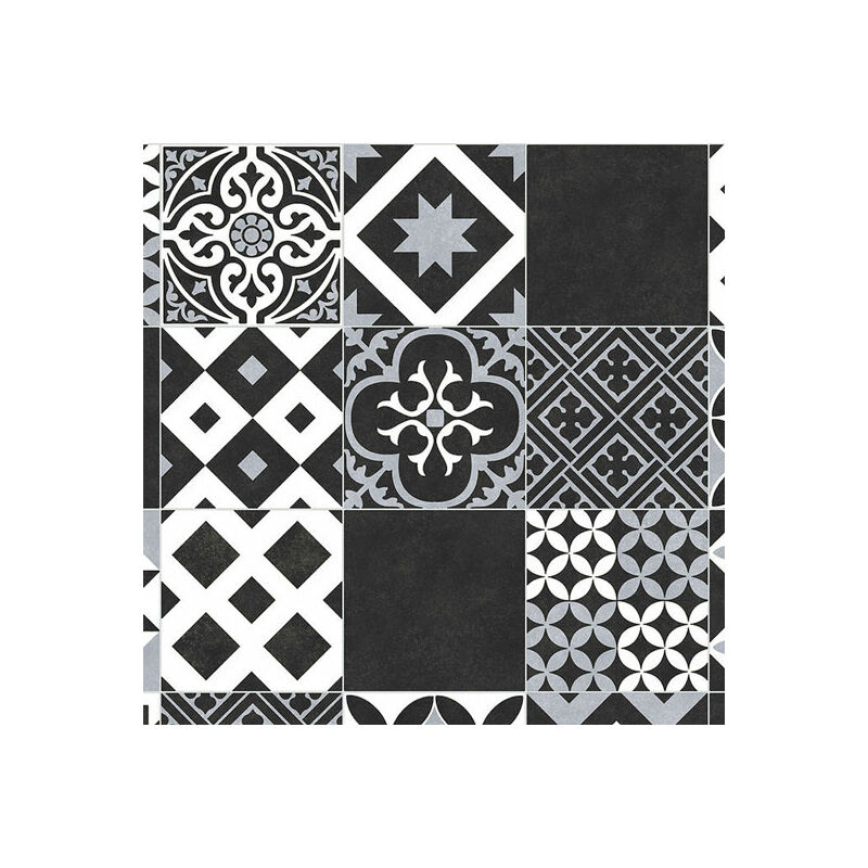 Sol Vinyle Carreaux de ciment mosaïque noir - Rouleau de 2m x 13m