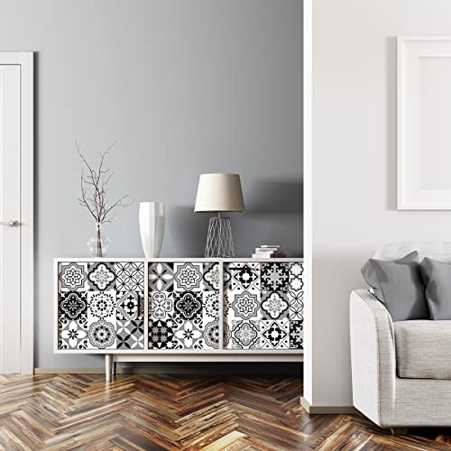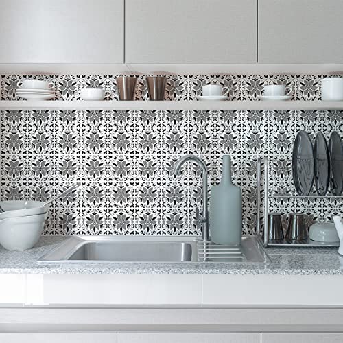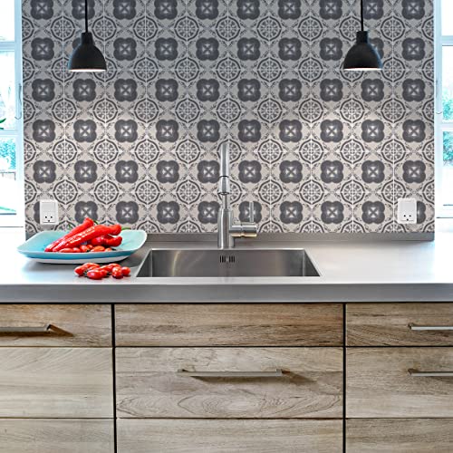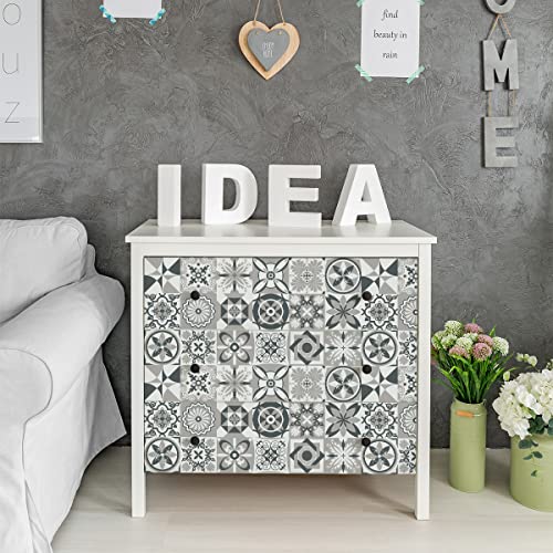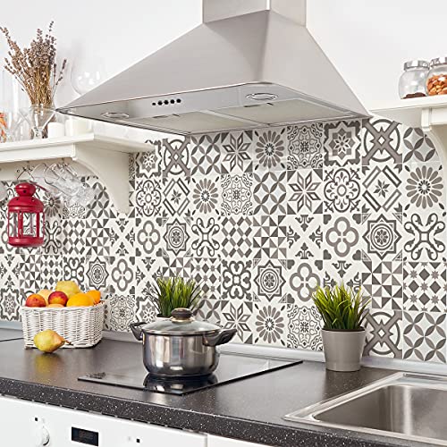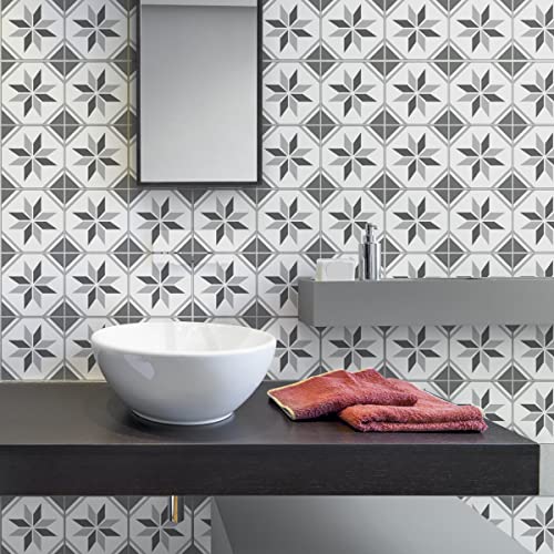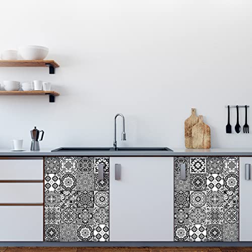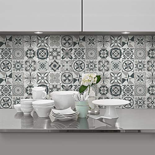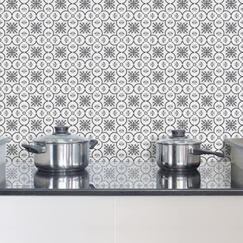 Sticker Mural Carrelage adhésif Cuisine Salle de Bain - 9 Stickers CARRELAGES AZULEJOS Ornements Nuance DE Gris - 9stickers10x10cm
