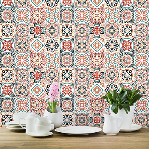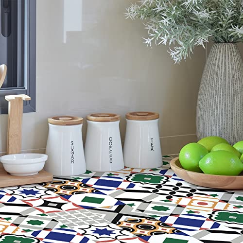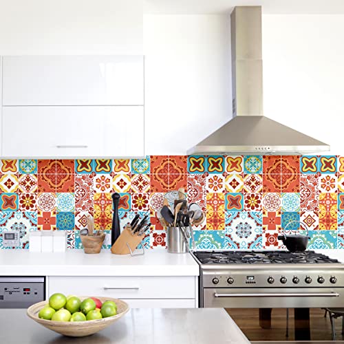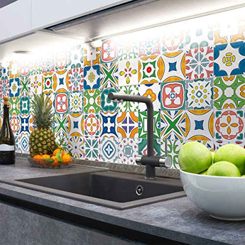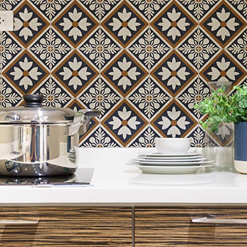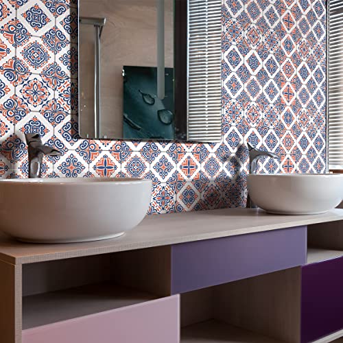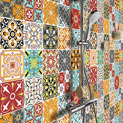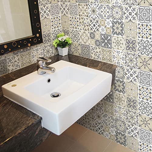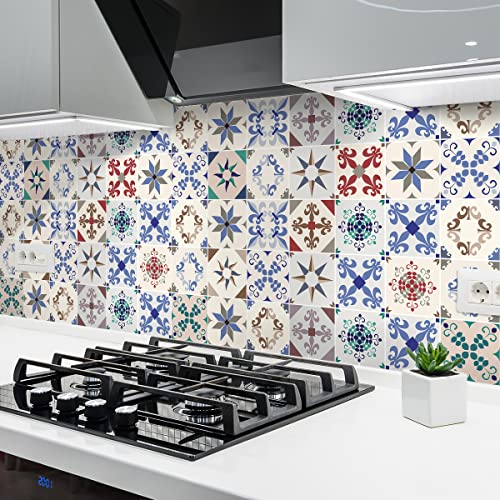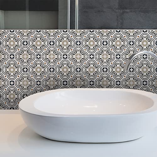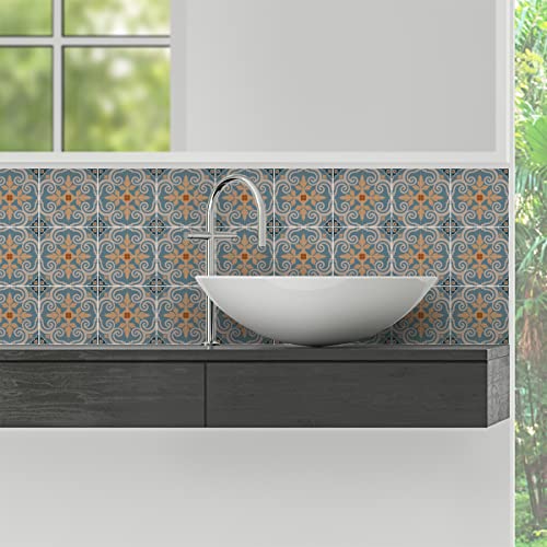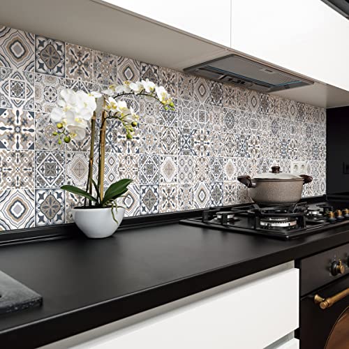 Sticker Mural Carrelage adhésif Cuisine Salle de Bain - 24 Stickers Carreaux DE Ciment AZULEJOS Arina - 24stickers10x10cm