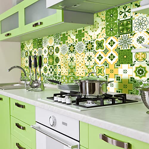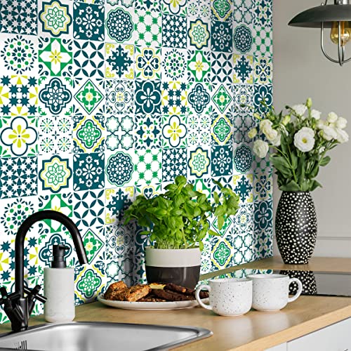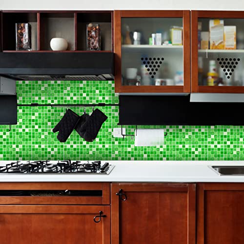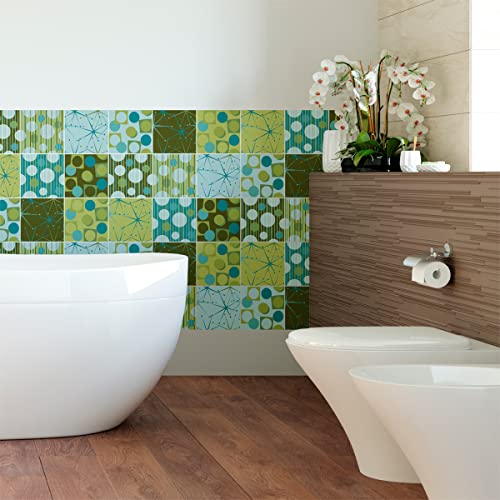 Sticker Mural Carrelage adhésif Cuisine Salle de Bain - 9 Stickers Carreaux DE Ciment MOSAÏQUES Nuance DE Vert - 9stickers10x10cm