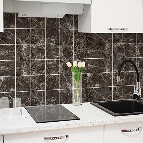 Sticker Mural Carrelage adhésif Cuisine Salle de Bain - 60 Stickers Carreaux DE Ciment MARBRE Brun DE SAN JOSÉ - 60stickers15x15cm