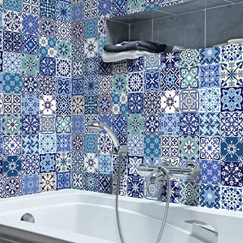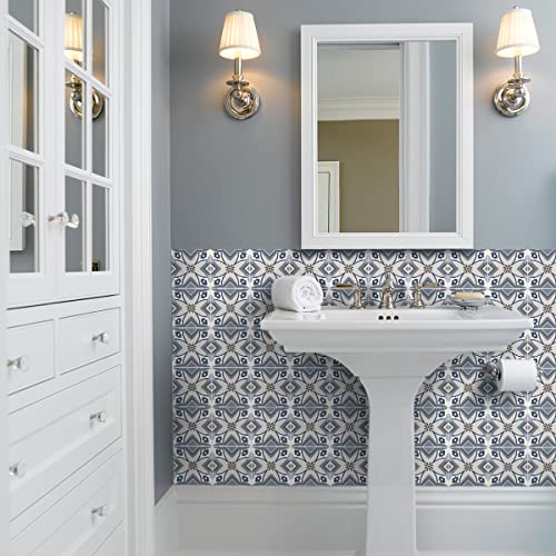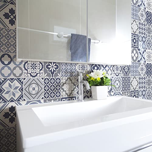 Sticker Mural Carrelage adhésif Cuisine Salle de Bain - 24 Stickers Carreaux DE Ciment AZULEJOS CANTABRIE - 24stickers10x10cm