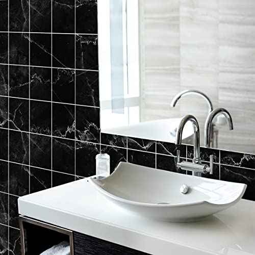 Sticker Mural Carrelage adhésif Cuisine Salle de Bain - 24 Stickers CARRELAGES Effet MARBRE Noir ET Blanc - 24stickers10x10cm