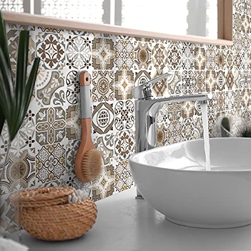 Ambiance Sticker Mural Carrelage Adhésif Cuisine et Salle de Bain Carrelages | Autocollant Carrelages Mosaïque | 60 Tiles Sticker de 20x20 cm