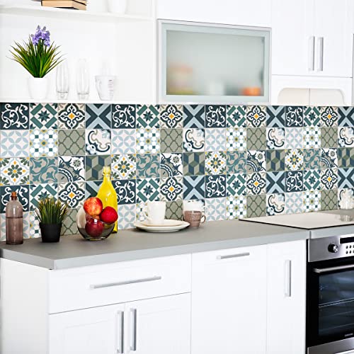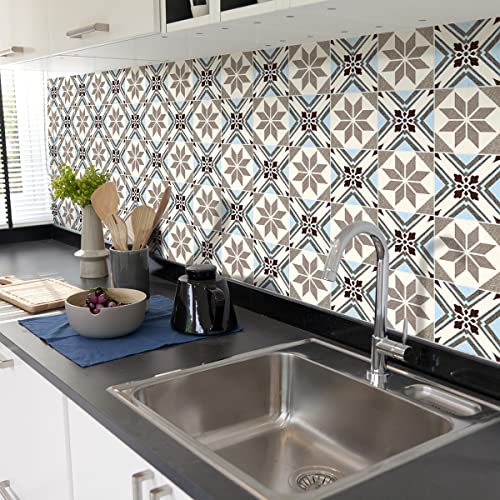 Sticker Mural Carrelage adhésif Cuisine Salle de Bain - 24 Stickers Carreaux DE Ciment AZULEJOS TISILA - 24stickers10x10cm