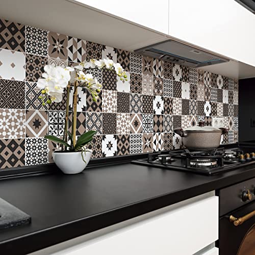 Sticker Mural Carrelage adhésif Cuisine Salle de Bain - 24 Stickers Carreaux DE Ciment AZULEJOS ASHANTIA - 24stickers10x10cm