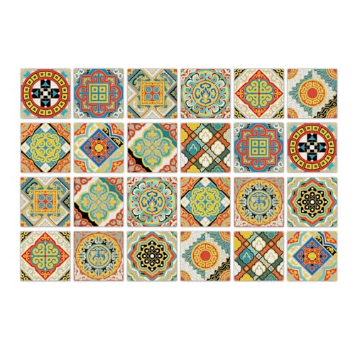 WALPLUS Stickers Carrelage Credence Adhesive Pour Cuisine Stickers Muraux Auto-Adhésif Résistant à l'huile Imperméable à l'eau Réutilisable Amovible Maison Vintage Green Antique Azulejo 24pcs 15cm(6")