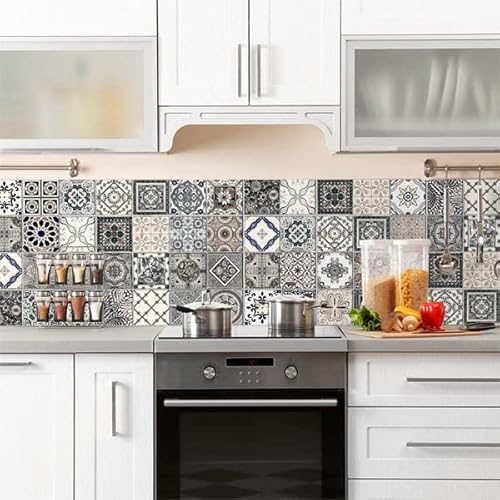 WALPLUS Stickers Carrelage Credence Adhesive Pour Cuisine Stickers Muraux Auto-Adhésif Résistant à l'huile Imperméable à l'eau Réutilisable Amovible Maison Dark Grey Spanish Renaissance 24pcs 15cm(6")