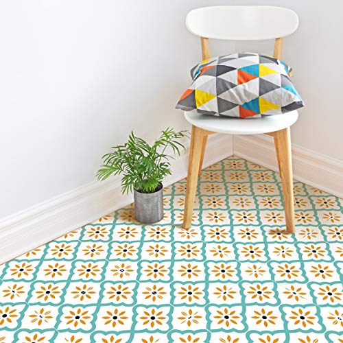 Ambiance Sticker Sol Carreaux de Ciment Azulejos avec Laminat de Protection Plastique Anti-Dérapant | Mabre Vert Doré Sol Résistant à l'eau - Sticker Carrelage Adhésif pour Sol - 20 x 20 cm