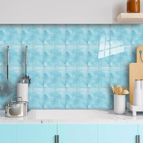 Credence Adhesive Salle de Bain Imprimer Bleu Ciel Blanc Crédence Adhésive Cuisine Armoires Meubles Decoration Imperméables PVC Carrelage Adhesif Mural Salle de Bain