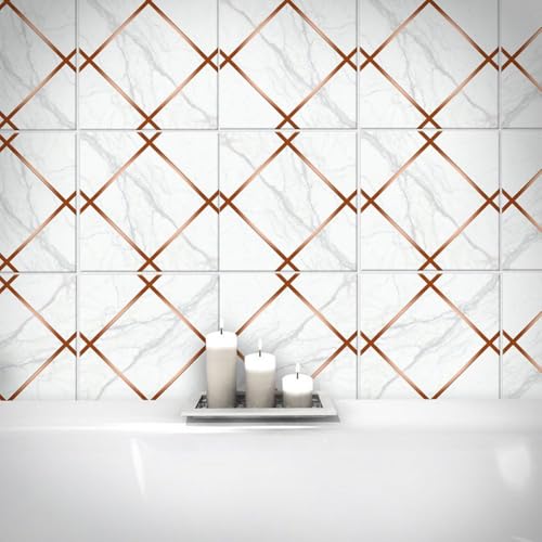 Credence Adhesive Salle de Bain Marbre Blanc Géométrique Lignes Brunes Crédence Adhésive Cuisine Armoires Meubles Decoration Imperméables PVC Carrelage Adhesif Mural Salle de Bain