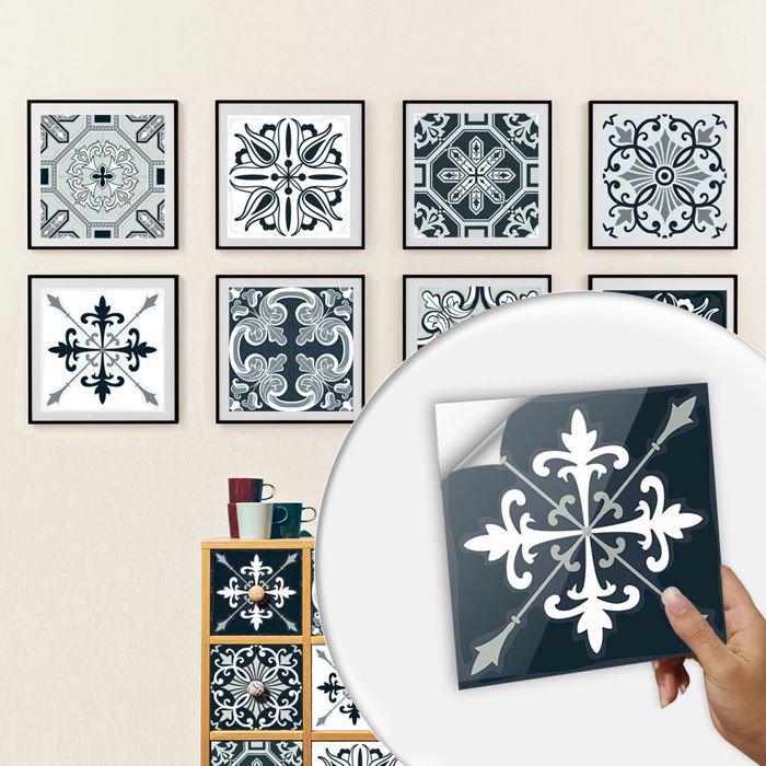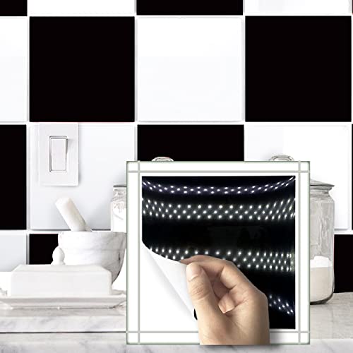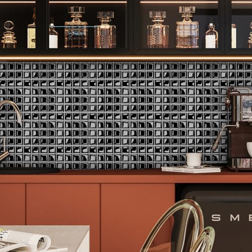 Stickers Muraux Cuisine Noir Blanc Géométrique Credence Adhesive pour Cuisine PVC Carrelage Adhesif Mural Stickers Carrelage Imperméable pour la Salon Salle de Bain DIY Maison 10 Pièces/25x25cm
