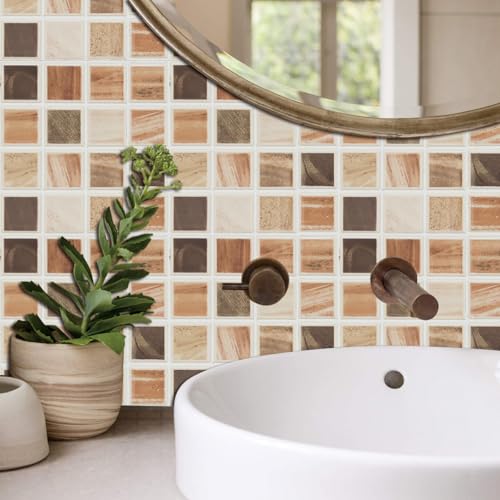 Credence Adhesive Salle de Bain Brown Orange Mosaïque Crédence Adhésive Cuisine Armoires Meubles Decoration Imperméables PVC Carrelage Adhesif Mural Salle de Bain