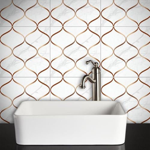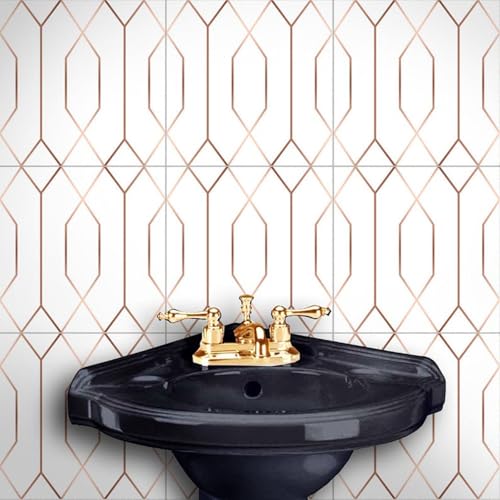 Credence Adhesive Salle de Bain Mosaïque Blanche Dorée Crédence Adhésive Cuisine Armoires Meubles Decoration Imperméables PVC Carrelage Adhesif Mural Salle de Bain