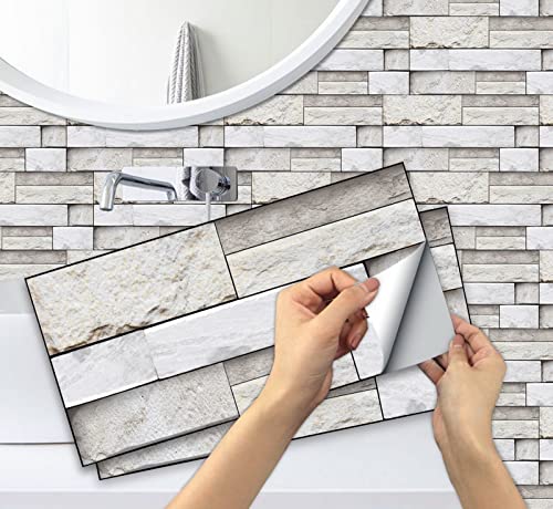 A.Monamour Stickers Carrelage Autocollants 3D Motif Imitation Pierre Brique Effet Imperméable Carrelage Adhésif PVC Décoration Murale pour Crédence de Cuisine Salle de Bain 15cmx30cm