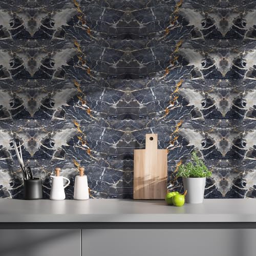 Credence Adhesive Salle de Bain Marbre Jaune Bleu Crédence Adhésive Cuisine Armoires Meubles Decoration Imperméables PVC Carrelage Adhesif Mural Salle de Bain 30×240CM