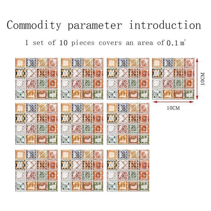 Commomy 10 Pièces Credence Adhesive pour Cuisine Mat PVC Carrelage Adhesif Mural, 30 x 30 cm, Carrelage Adhésif pour cuisine, salle de bain, décoration murale