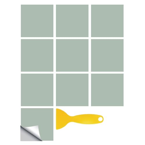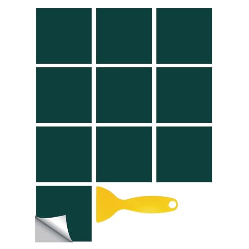Lot de 10 autocollants pour carrelage mural vert pour cuisine, salle de bain - Carrés - 30,5 x 30,5 cm - 0,94 m²