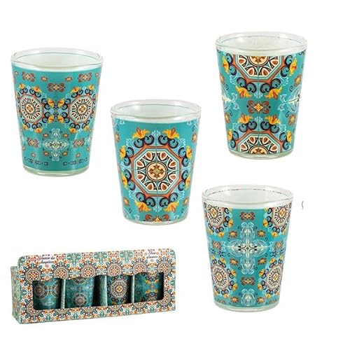 DRW Lot de 4 verres à shot en verre carrelage vert 5 x 5 x 6 cm
