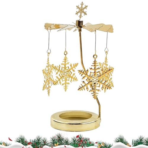 Spinner de Bougie de carrousel de Noël, Spinner de Bougie de Noël,Bougeoir Rotatif avec Flocon de Neige - Bougeoir Rotatif doré Spinner en Acier Inoxydable Glod