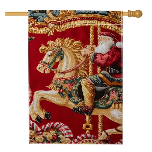 Carrousel de Noël, drapeau de jardin de Père Noël, bannière de décoration de vacances, drapeau double face en toile de jute pour décoration extérieure, 30,5 x 45,7 cm