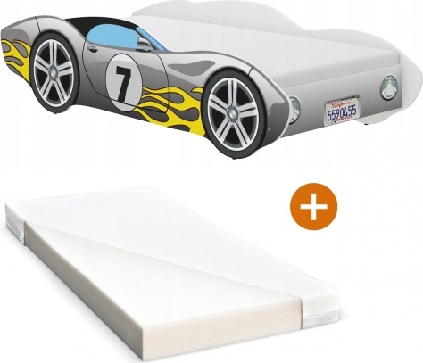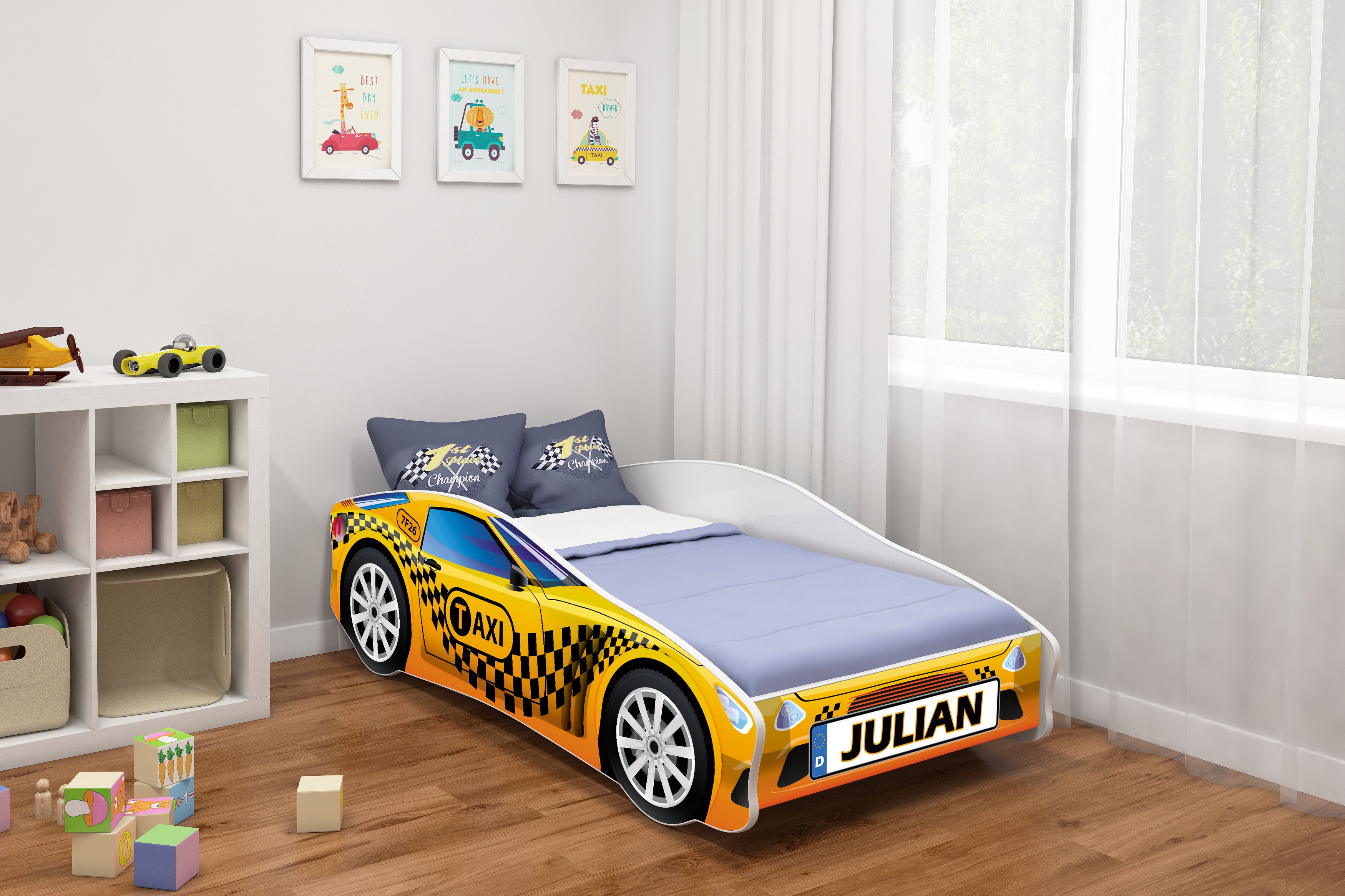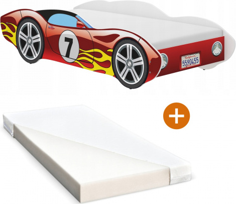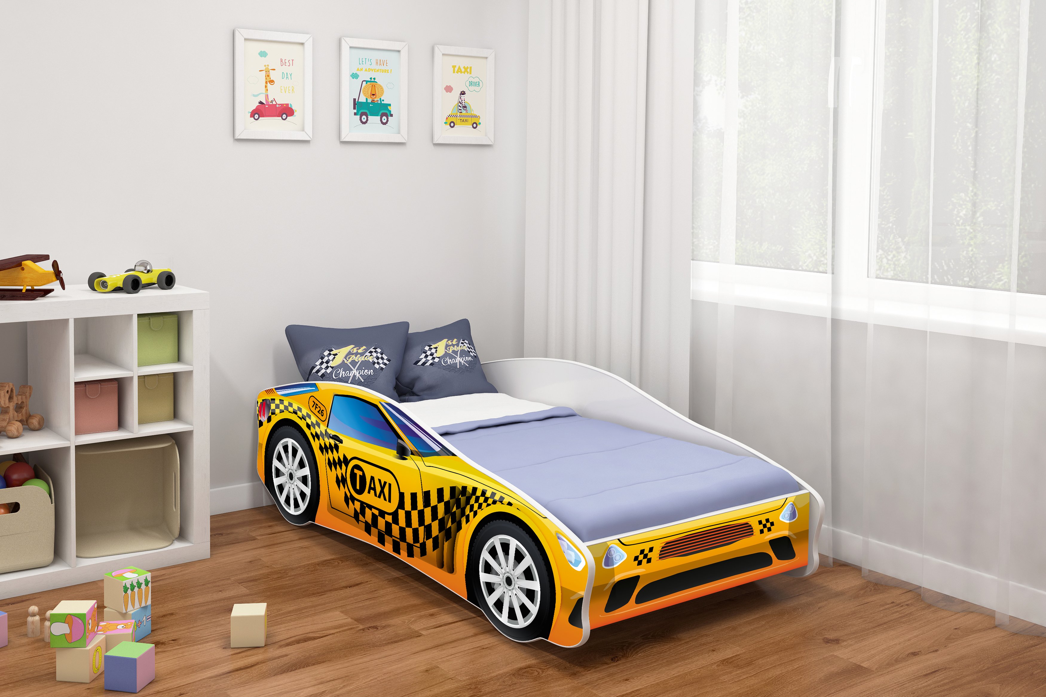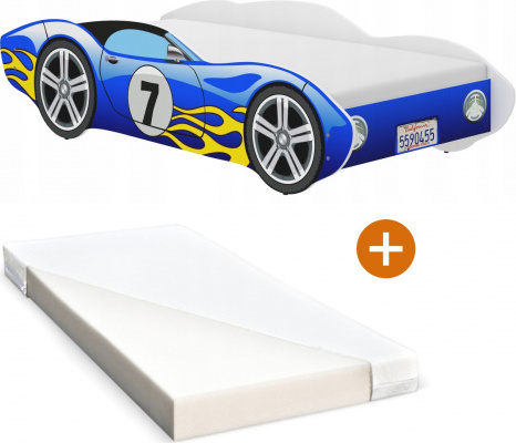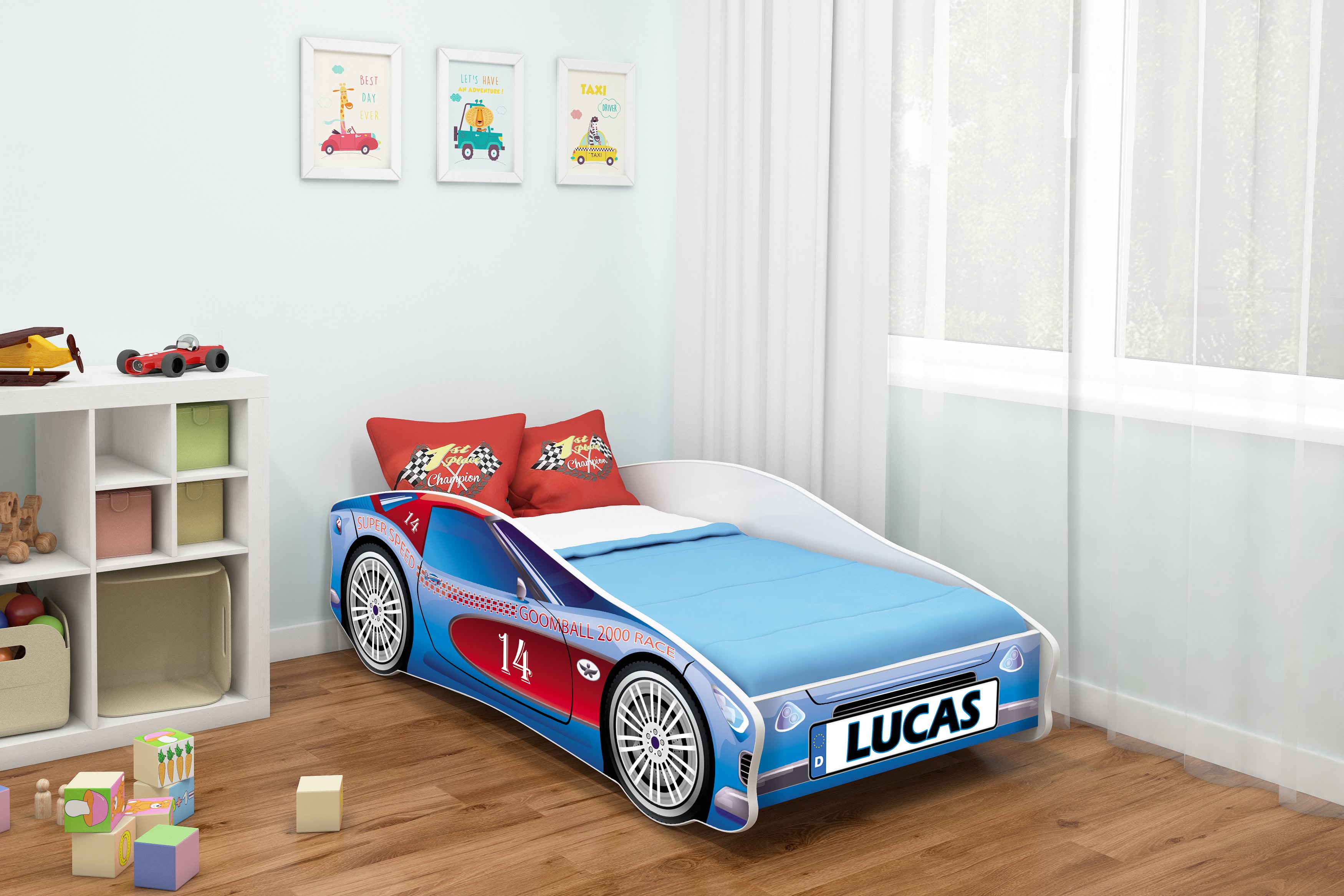 ACMA Lit d'enfant Lit de voiture Junior Cars Lit set complet avec matelas, sommier et protection contre les chutes 140x70 cm - CAR-5 + NOM