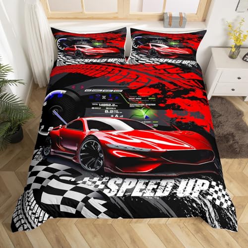 Homemissing Enfants Garçons Filles Rouge Racing Ensembles de Literie Junior Sport Cars Confort Housse de Couette 220x240cm Racing Parure de Lit Racing Literie Set