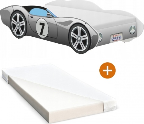 iGLOBAL Lit d'enfant Lit - car Bed - Cars Lit d'enfant Lit junior Lit avec sommier à lattes Matelas en mousse 140 x 70 cm Gris