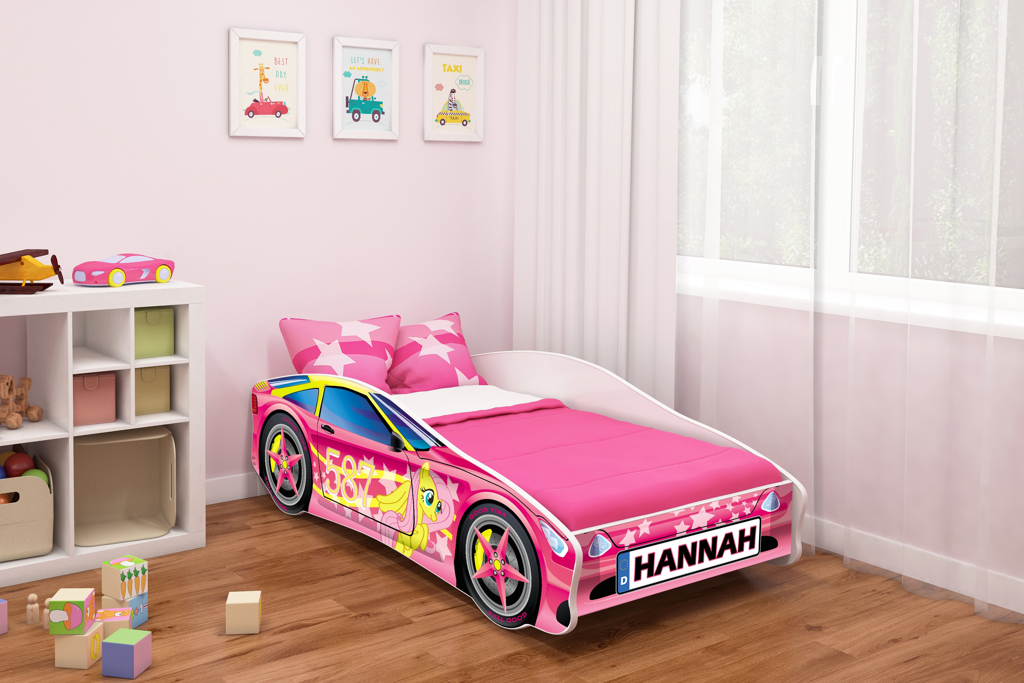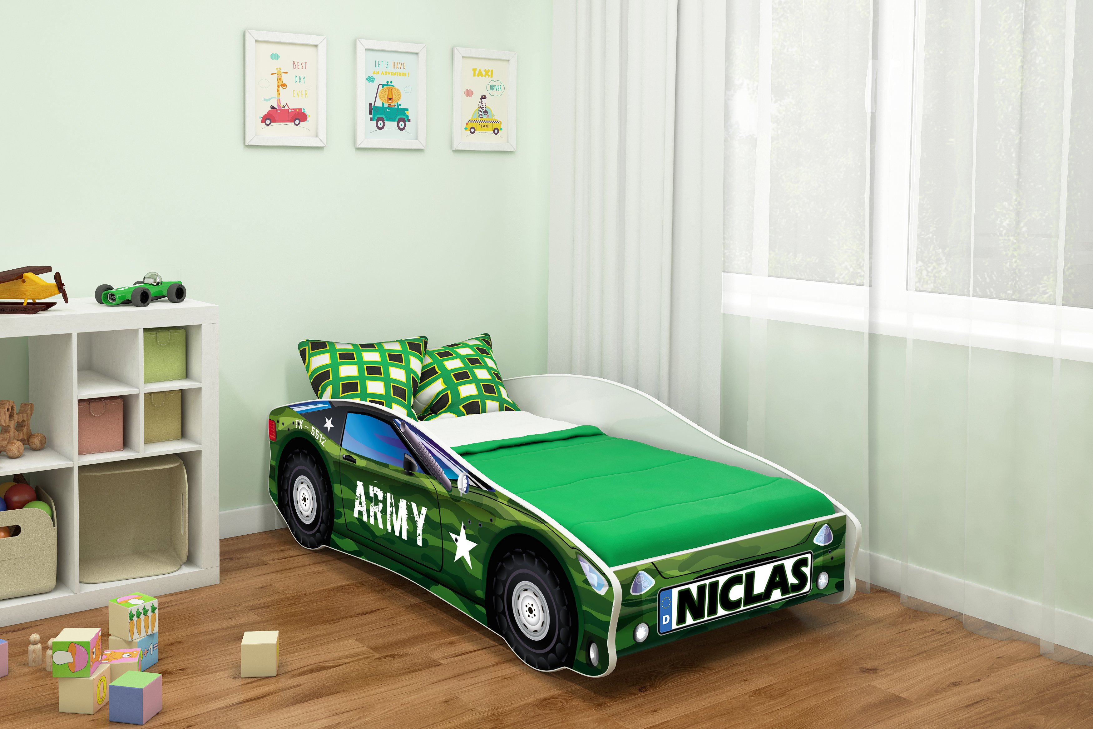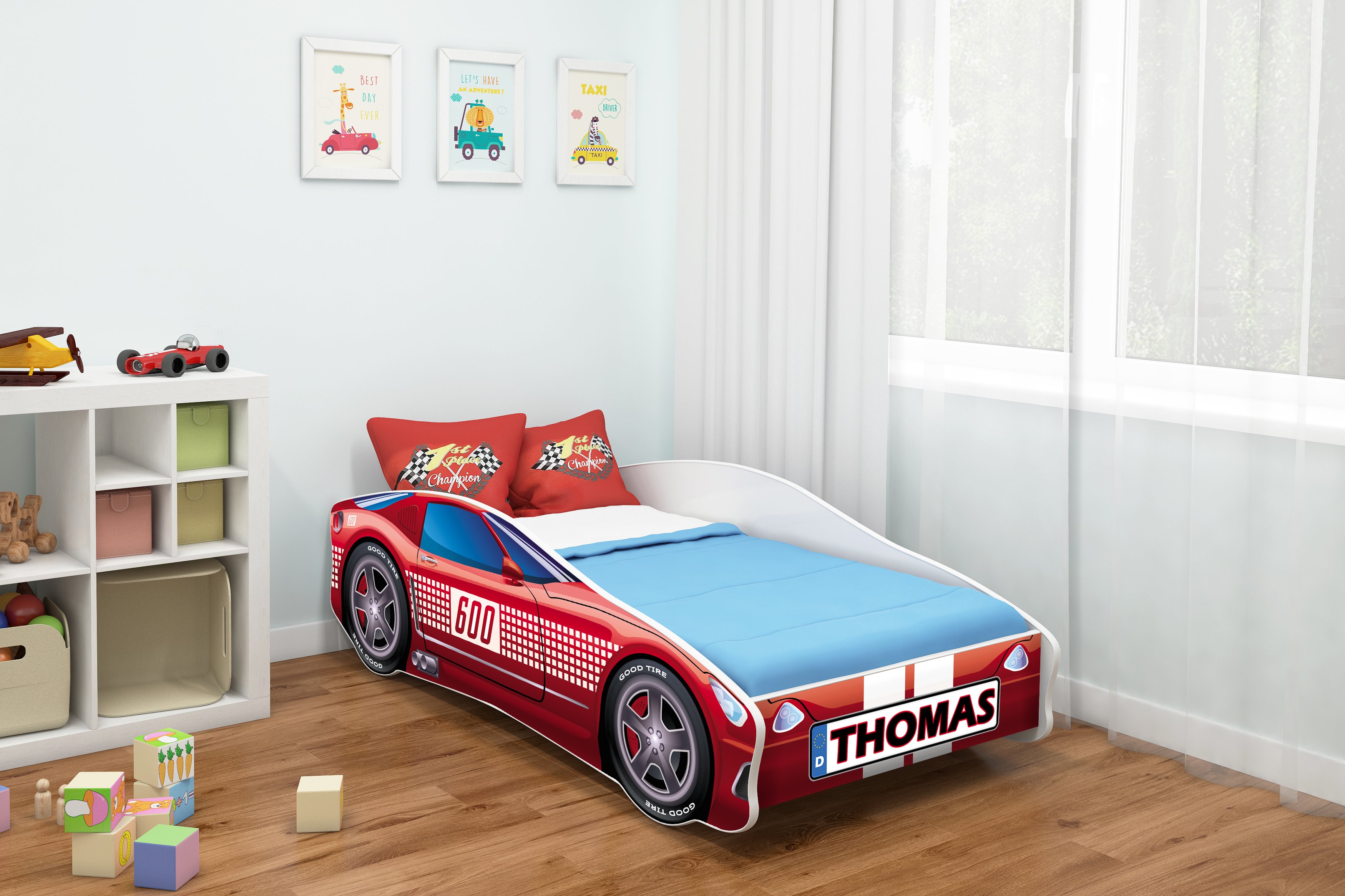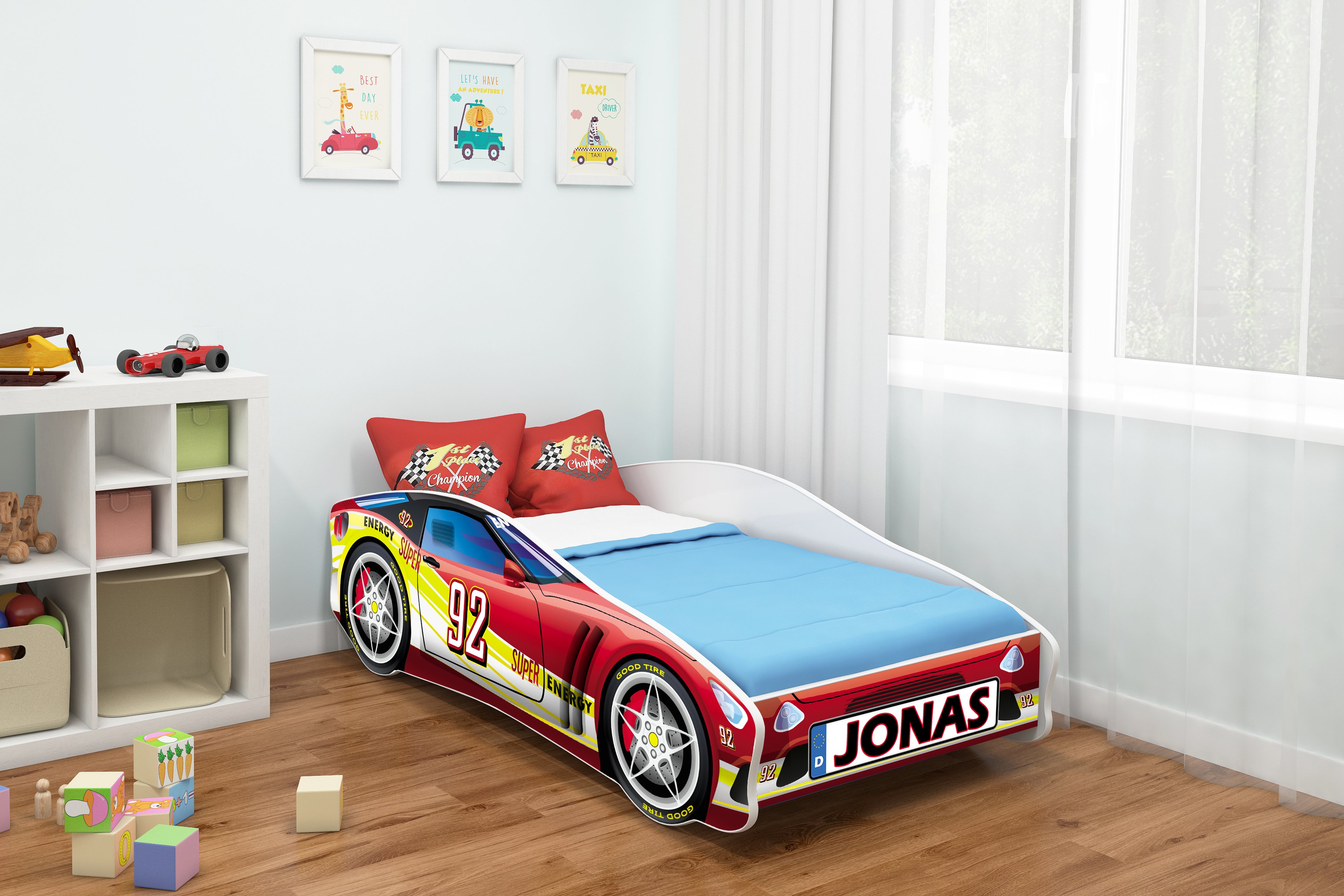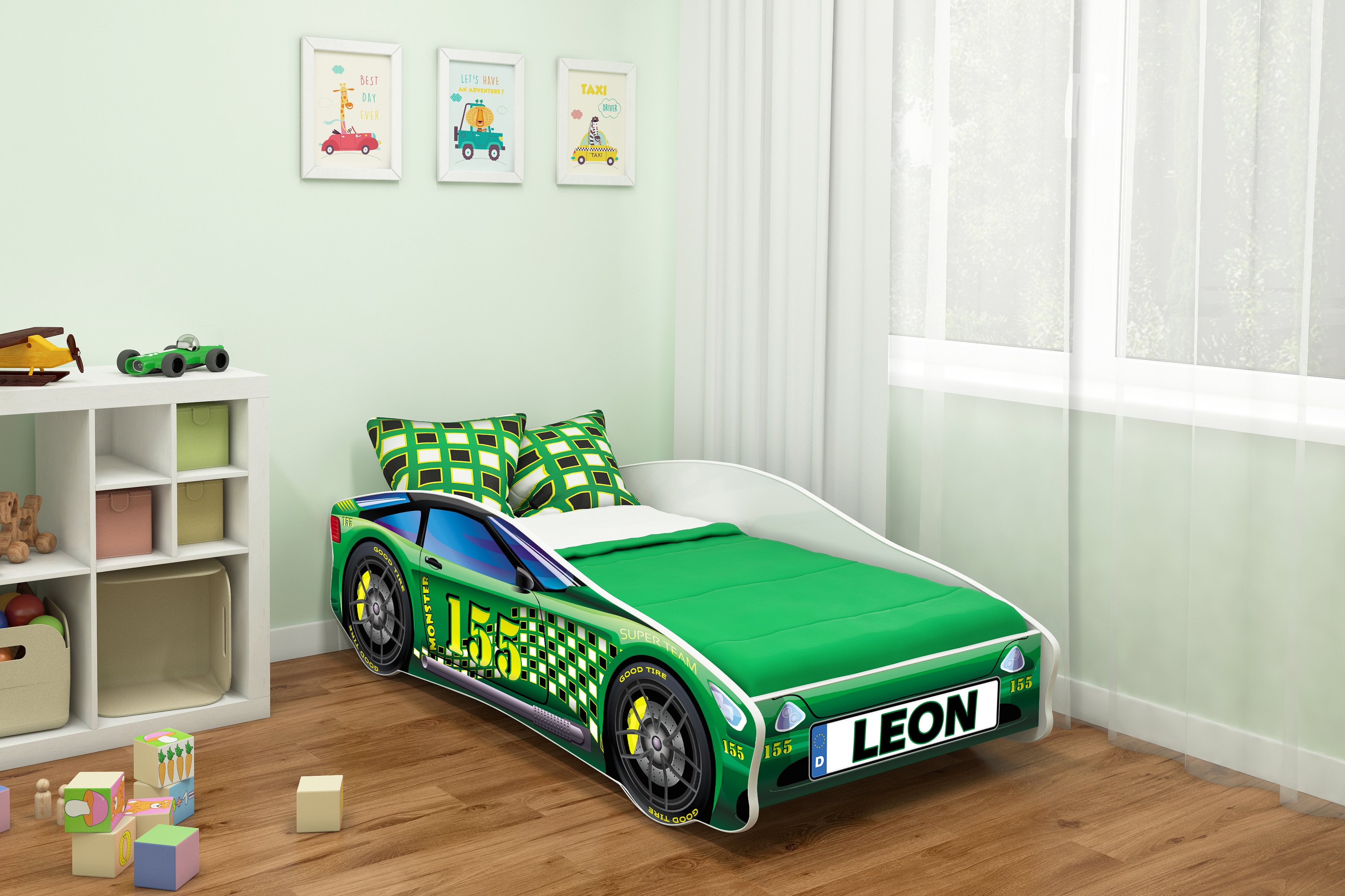 ACMA lit d'adolescent lit d'enfant lit de voiture Junior Cars lit set complet avec matelas, sommier et protection contre les chutes 160x80 cm -CAR-1 + NOM