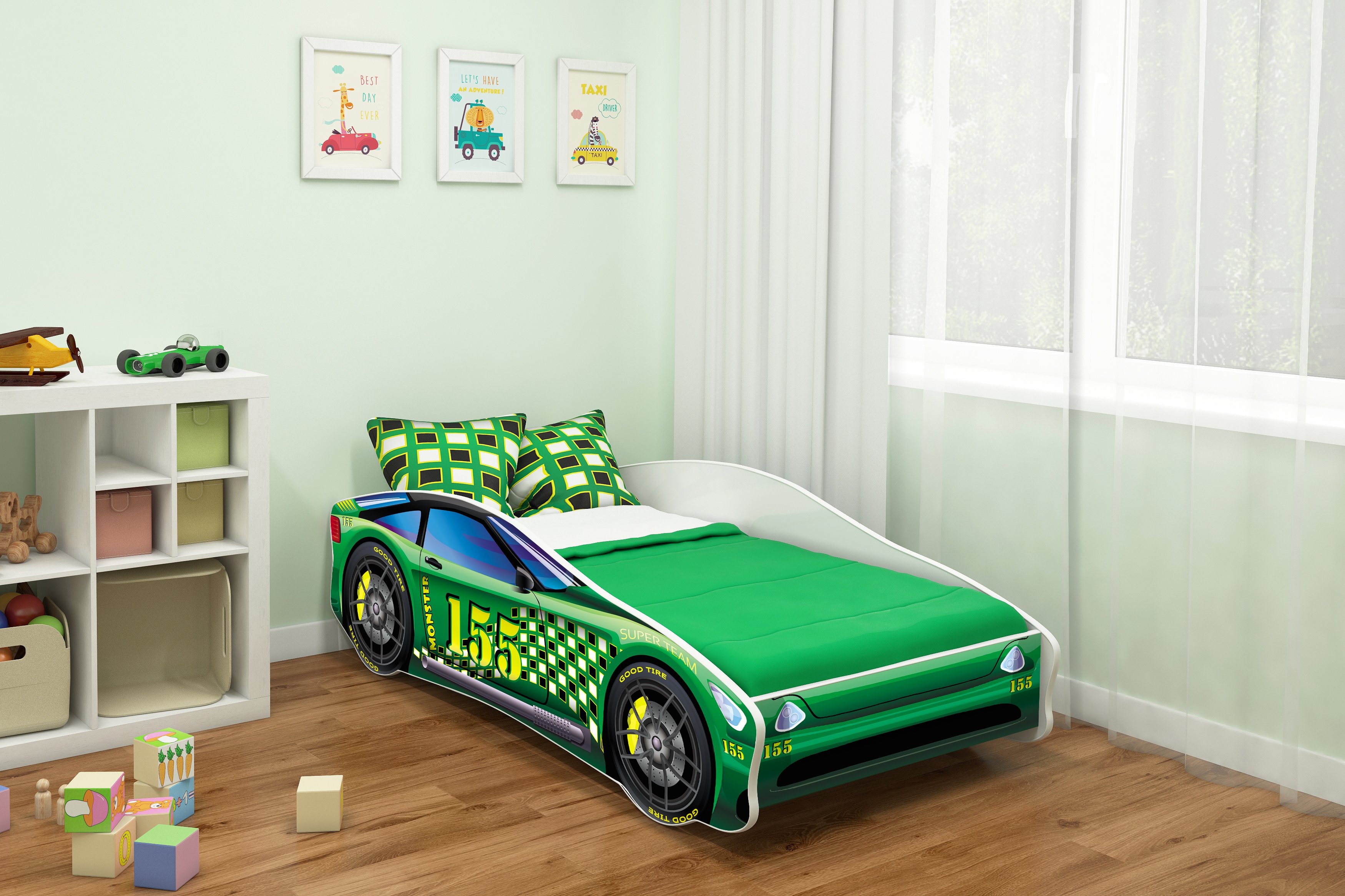 ACMA Lit d'enfant Lit de voiture Junior Cars Lit complet avec matelas, sommier à lattes et protection contre les chutes 160x80cm - CAR-4 + NOM